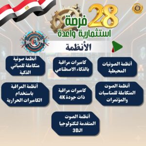 21- الأنظمة (أنظمة الصوتيات المحيطية- كاميرات مراقبة بالذكاء الاصطناعي- أنظمة صوتية متكاملة للمباني الذكية- أنظمة المراقبة باستخدام الكاميرات الحرارية- أنظمة الصوت المتكاملة للمناسبات والمؤتمرات-كاميرات مراقبة ذات جودة 4K- أنظمة الصوت المتقدمة لتكنولوجيا الـ3D)