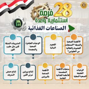 في إطار توجيهات الفريق مهندس/ كامل الوزير، نائب رئيس مجلس الوزراء للتنمية الصناعية وزير الصناعة والنقل بتعميق التصنيع المحلي، حددت وزارة الصناعة 28 صناعة وفرصة استثمارية واعدة ومستهدفة لجذب استثمارات بها بهدف تلبية احتياجات السوق، وتقليل فاتورة الواردات، وتدعو الوزارة المستثمرين الجادين لضخ استثمارات جديدة أو التوسع في هذه الصناعات الواعدة والمستهدفة التي توليها الوزارة اهتماماً بالغاً.