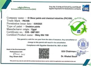 قامت الهيئة المصرية العامة للمواصفات والجودة بتسليم أول علامة خضراء للدهانات لشركة العبور للبويات والصناعات الكيماوية “باكين” عن منتجها شايني سيلك 1160، لتصبح بذلك أول شركة مصرية تنجح في الحصول على هذه العلامة الخضراء والتي تعد أداة هامة لتشجيع الصناعات الوطنية على التحول نحو الإنتاج المستدام، وتقديم منتجات آمنة وصديقة للبيئة تتوافق مع التوجهات العالمية في مواجهة التغيرات المناخية.