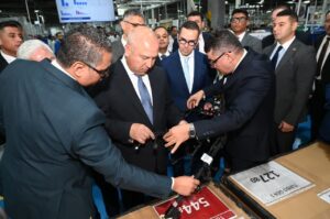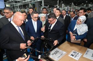 واختتم الوزير جولته بزيارة مجمع مصانع شركة سوميتومو وايرينج سيستيمز إيجيبت المتخصص في تصنيع ضفائر السيارات والمقام على مساحة 23 ألف متر مربع بمبيعات يبلغ 100 مليون يورو، وتبلغ طاقته الإنتاجية 11 مليون ضفيرة سنوياً، ونسبة المكون المحلي أكثر من 42% ويصدر المجمع منتجاته بالكامل لأسواق تركيا وسلوفاكيا وفرنسا والتشيك وبولندا والمجر، ويوظف أكثر من 4200 عامل وموظف، وقد رافق الوزير خلال الجولة المهندس/ حسن الخطيب، وزير الاستثمار والتجارة الخارجية، والمهندس/ عادل النجار، محافظ الجيزة والسيد/ محمد همام العضو المنتدب للشركة، وتفقد الوزير خلال الزيارة خطوط إنتاج ضفائر سيارات (بيجو-ستروين-أوبل-تويوتا) كما تفقد معرضاً للمنتجات النهائية للمصنع.