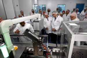 واستهل الوزير جولته بزيارة لمصنع شركة نيرهادو الدولية للأدوية والمكملات الغذائية، والمقام على مساحة 15.2 ألف متر مربع برأس مال 437 مليون جنيه مصري، وتبلغ طاقته الإنتاجية من أفلام سريعة الذوبان 840 مليون فيلم سنوياً، ومن الكبسولات 880 مليون كبسولة في السنة، ونسبة المكون المحلي 60%، ويوجه المصنع منتجاته للسوق المحلي وأسواق دول الخليج، ويوظف ألف عامل وموظف، وقد كان في استقبال الوزير بالمصنع الدكتور/ محمد محسن رئيس مجلس إدارة الشركة، وتفقد الوزير خلال الزيارة خطوط إنتاج الكبسولات (التعبئة والخلط والتغليف).