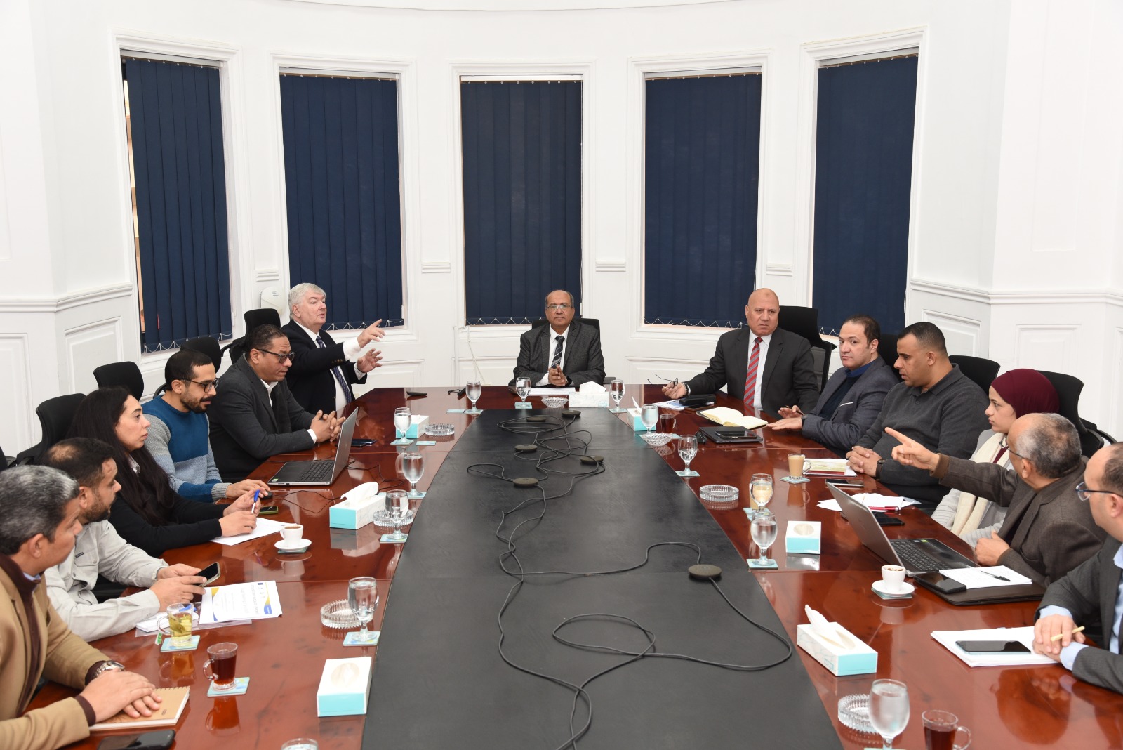 اجتمع المهندس أحمد جابر شحاتة رئيس مجلس إدارة الشركة القابضة لمياه الشرب والصرف الصحي، مع الدكتور أحمد نظمي مدير شركة بورد للاستشارات (The Board Consulting)، بحضور الدكتور ابو العباس عيسى نائب رئيس مجلس إدارة الشركة القابضة، لمناقشة مشروع تعزيز الوعي المجتمعي ومكون الاتصال والتوعية ضمن برنامج توسعة الصرف الصحي بمحافظة الفيوم، وذلك في إطار دعم البعد الخدمي والمجتمعي للمشروع.