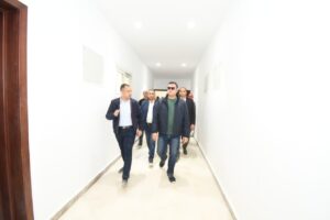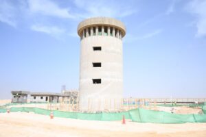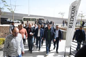وتجول المهندس شريف الشربيني بموقع المشروع، واستمع إلى شرح تفصيلي من مسئولي المشروع، عن الأعمال الجارية ونطاق الخدمة لمشروع الخزانات، والذي يتكون من الخزان العالي رقم (1) ، حيث يضم خزانًا أرضيًا سعة 40 ألف متر مكعب يوميًا لتغذية منطقة B1 ومنطقة أبراج الداون تاون، وخزانًا أرضيًا سعة 80 ألف متر مكعب يوميًا لتغذية المنطقة الصناعية ومنطقة مارينا، إضافة إلى خط طرد بقطر 900 مم، إلى جانب المباني الملحقة بالمشروع والتي تشمل مبنى الكلور ومبنى المولد ومبنى المحولات والمبنى الإداري وعنبر الطلمبات ومبنى المخزن والورشة والأسوار وغرف الأمن، بما يدعم استدامة خدمات المياه وتأمين احتياجات التوسعات العمرانية.