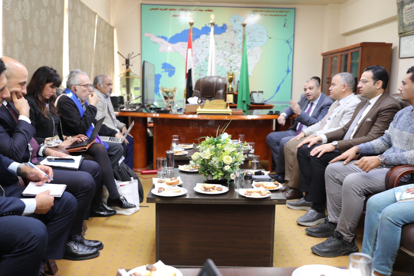 التقى الدكتور/ أبو العباس عيسى نائب رئيس مجلس إدارة الشركة القابضة لمياه الشرب والصرف الصحي، السيد/ أرجو بيدرو المقرر الخاص المعني بالحق في مياه الشرب الآمنة والصرف الصحي بالأمم المتحدة، وذلك خلال زيارته لشركة مياه الشرب والصرف الصحي بالفيوم، في إطار زيارته الرسمية لجمهورية مصر العربية للاطلاع على الجهود المبذولة لتحسين خدمات مياه الشرب والصرف الصحي وتعزيز منظومة خدمة العملاء.