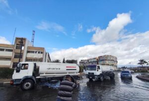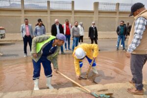 وفي مدينة السويس الجديدة، تمت متابعة أعمال سحب وشفط مياه الأمطار ميدانياً، والتأكد من كفاءة شبكات التصريف وانتظام عملها، مع الدفع بفرق العمل والمعدات إلى المناطق الحيوية، ومنها الطريق الساحلي والحي الصناعي والمنطقة الحرة، للتعامل الفوري مع تجمعات المياه.